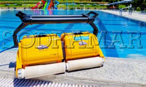 Esse modelo é destinado a piscinas comerciais de até 25 metros e tem ciclos de limpeza de 4, 6 ou 8 horas. Ele é controlado remotamente e acompanha um carrinho de transporte.