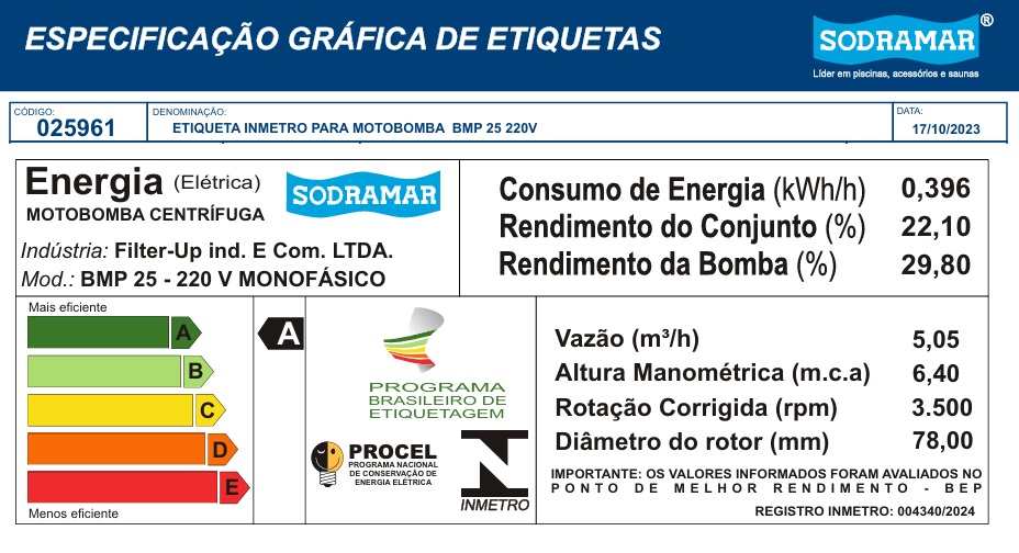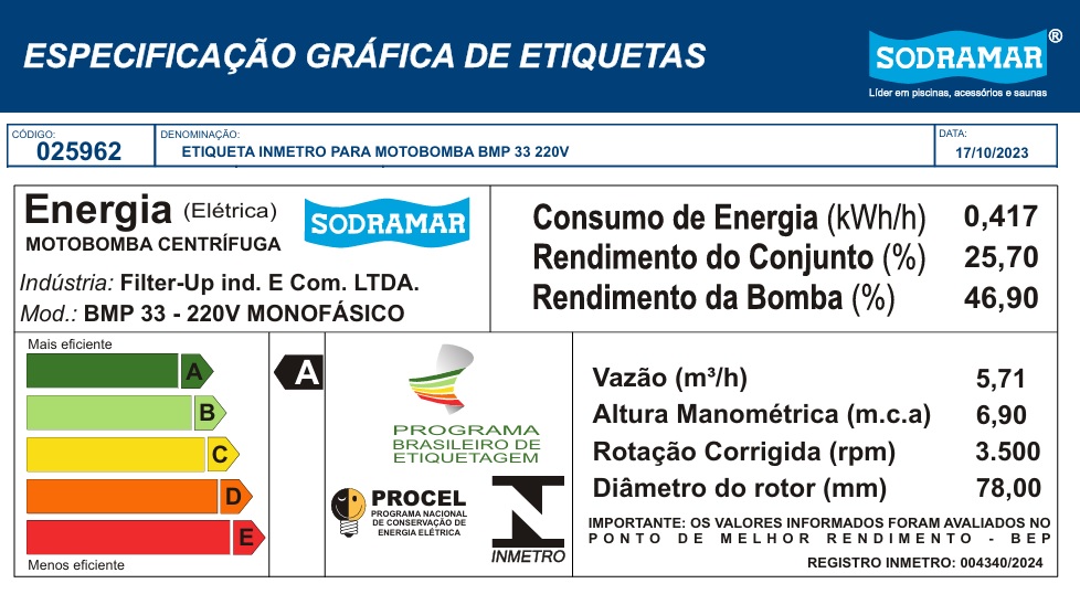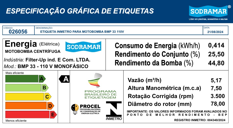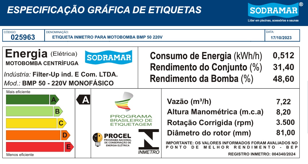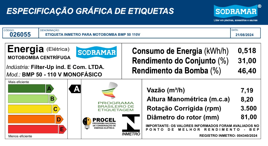 | Tabela de Rendimento das bombas BMP | |||||||||